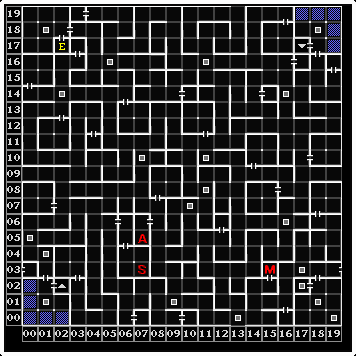 A : ワープ装置 パーティーの人数が6人なら自動解散しそれぞれの番号へ。 それ以下なら全員まとめて1番へ。 B : B20Fへ(シュート) クリア称号を得た後に利用可能。 初回攻略時の最終地点。 パーティーがバラバラになってしまうワープ装置が厄介ですが対処法はあります。 そしてボス戦があり、奥にあるアイテムをお城に持ち帰るとクリア。 …ではありますが、そう簡単にはいきません。 万全の状態にしてからクリアアイテムを取りましょう。 【 おすすめ帰還ルート 】 B19F(16,9)→B16F(14,1)、B16F(17,2)→B6F(17,17)、宿屋で回復、B6F(10,10)→B1F(10,10) HPが足りない時はB16Fで泉に入って魔法効果を取り除くのもアリ。 但し、呪文の使用不可は継続します。 |